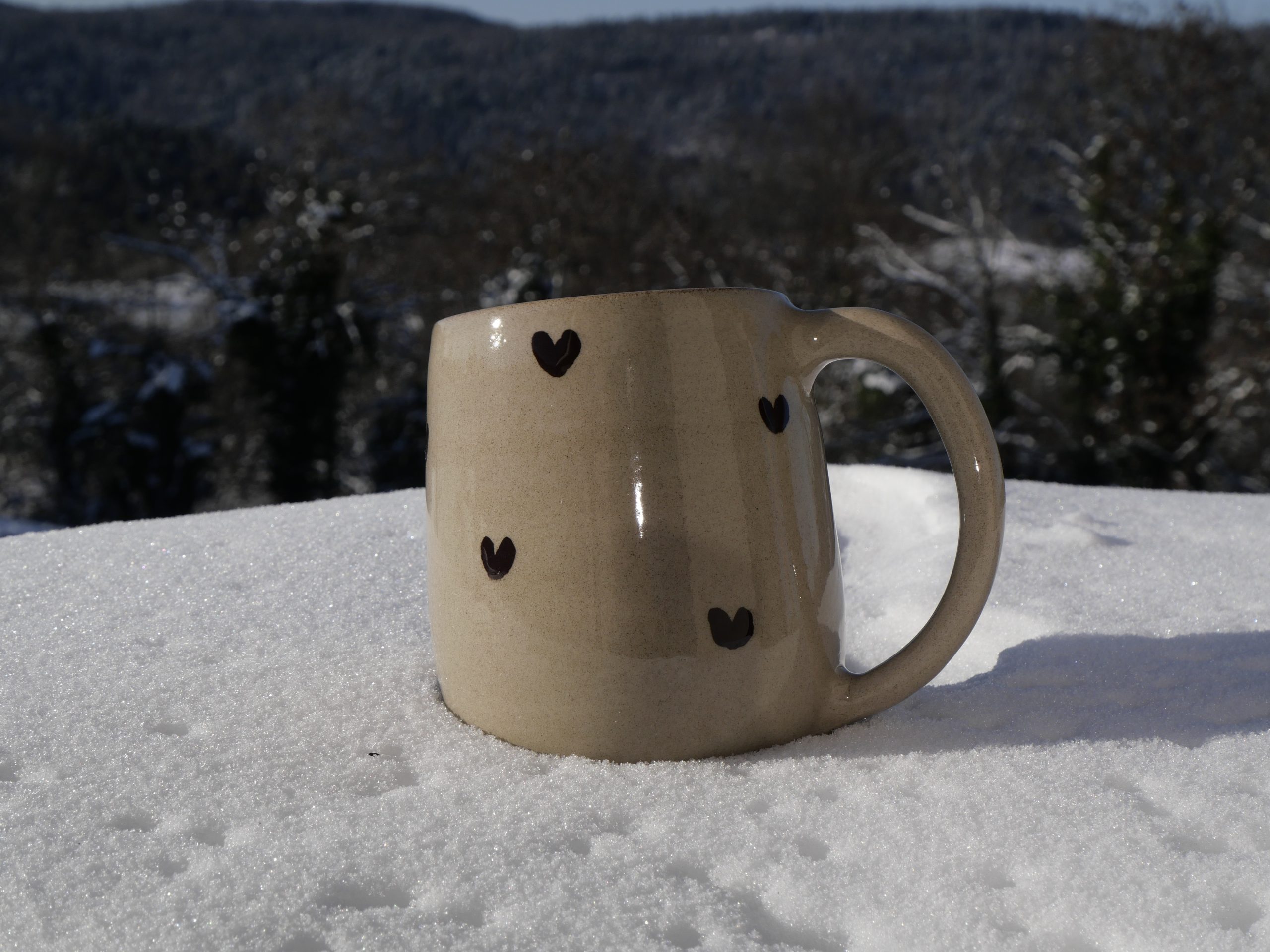 Grand mug en céramique réalisé 100 % à la main dans mon atelier. Tourné en grès, puis tournassé et émaillé avec des émaux issus de mes propres recherches.