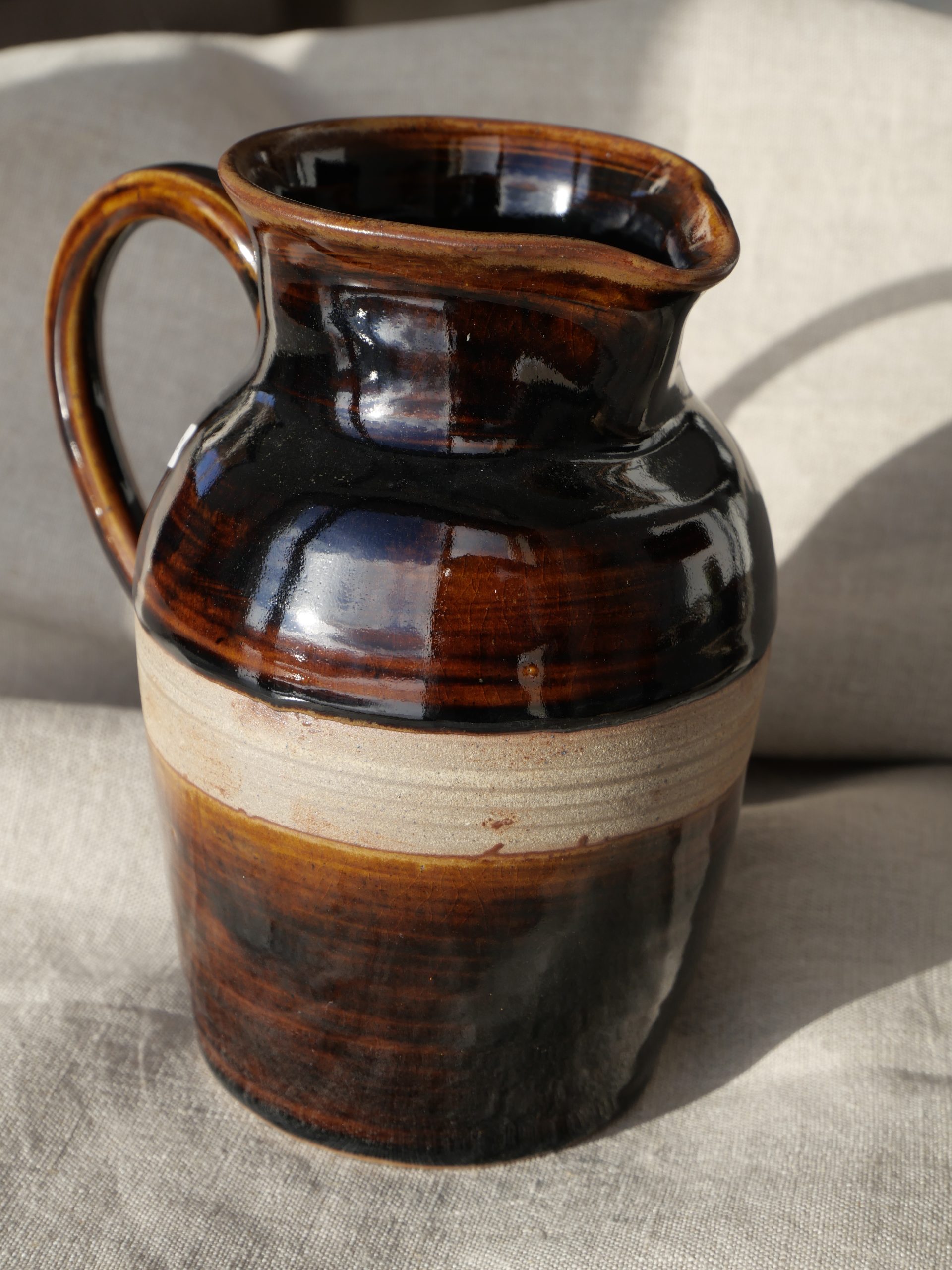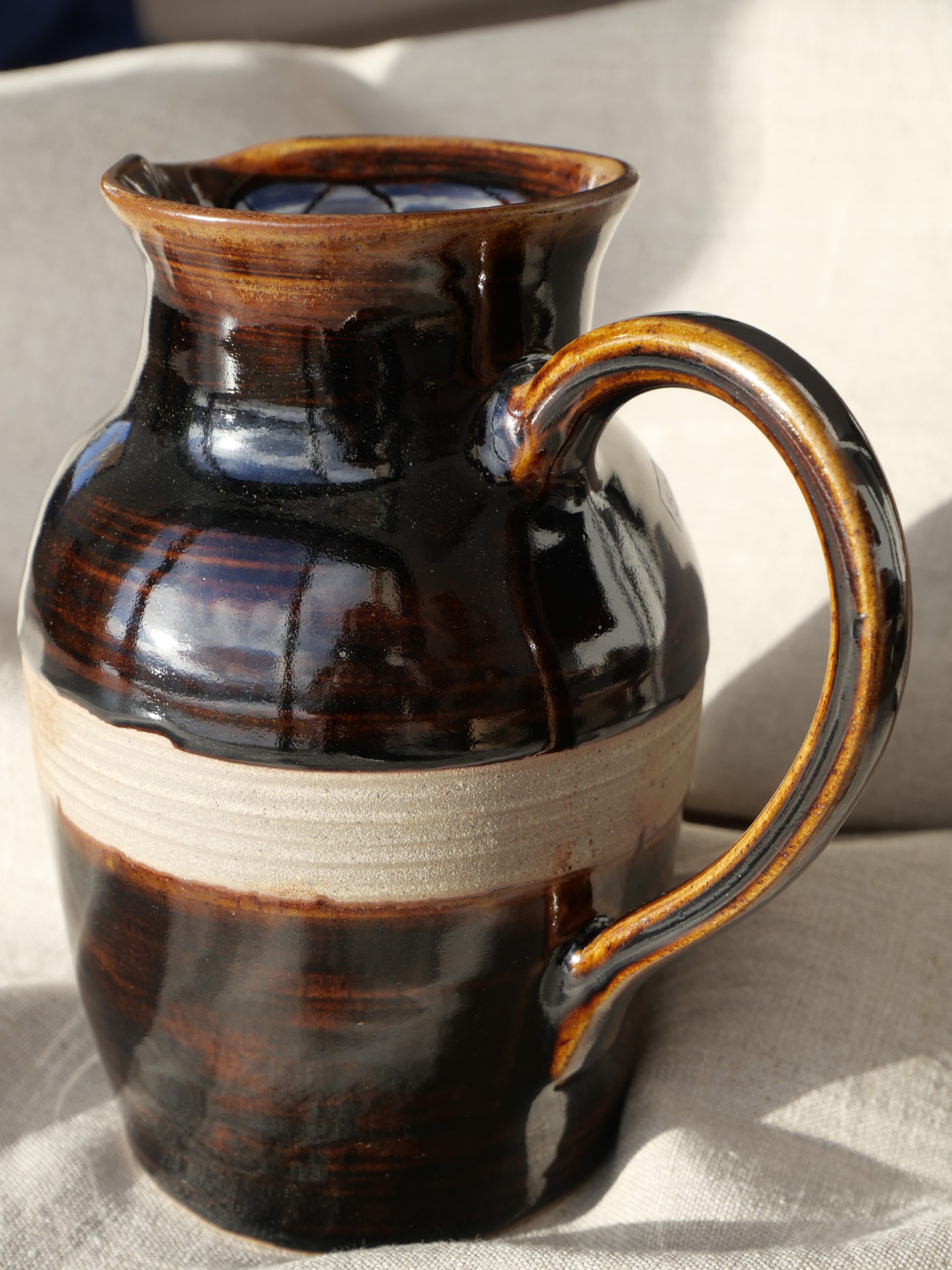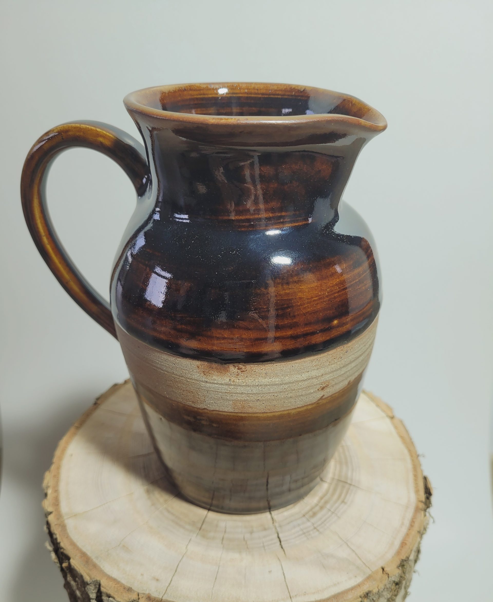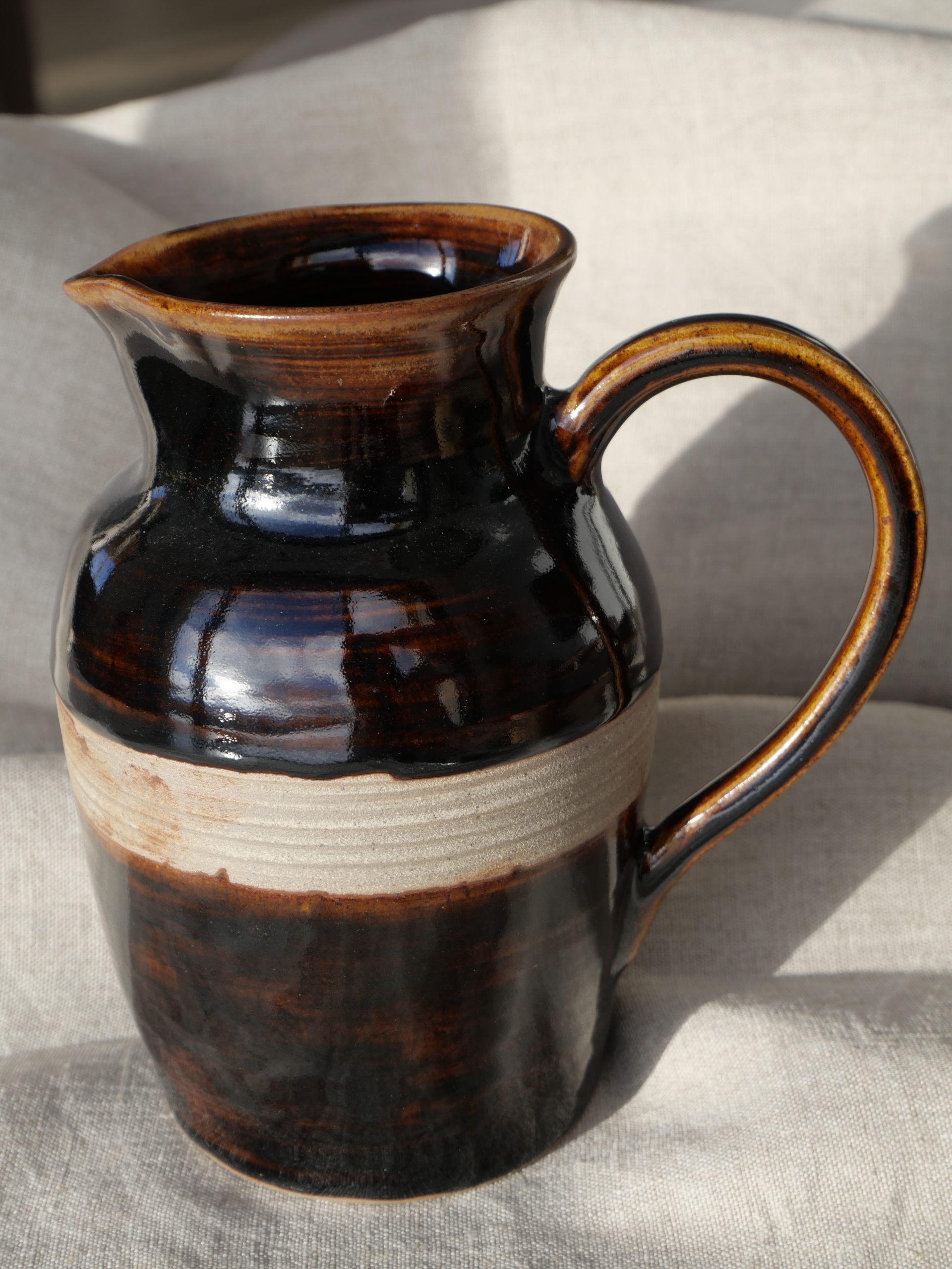 Pichet entièrement façonné à la main : tournage, anse et émaillage artisanaux.