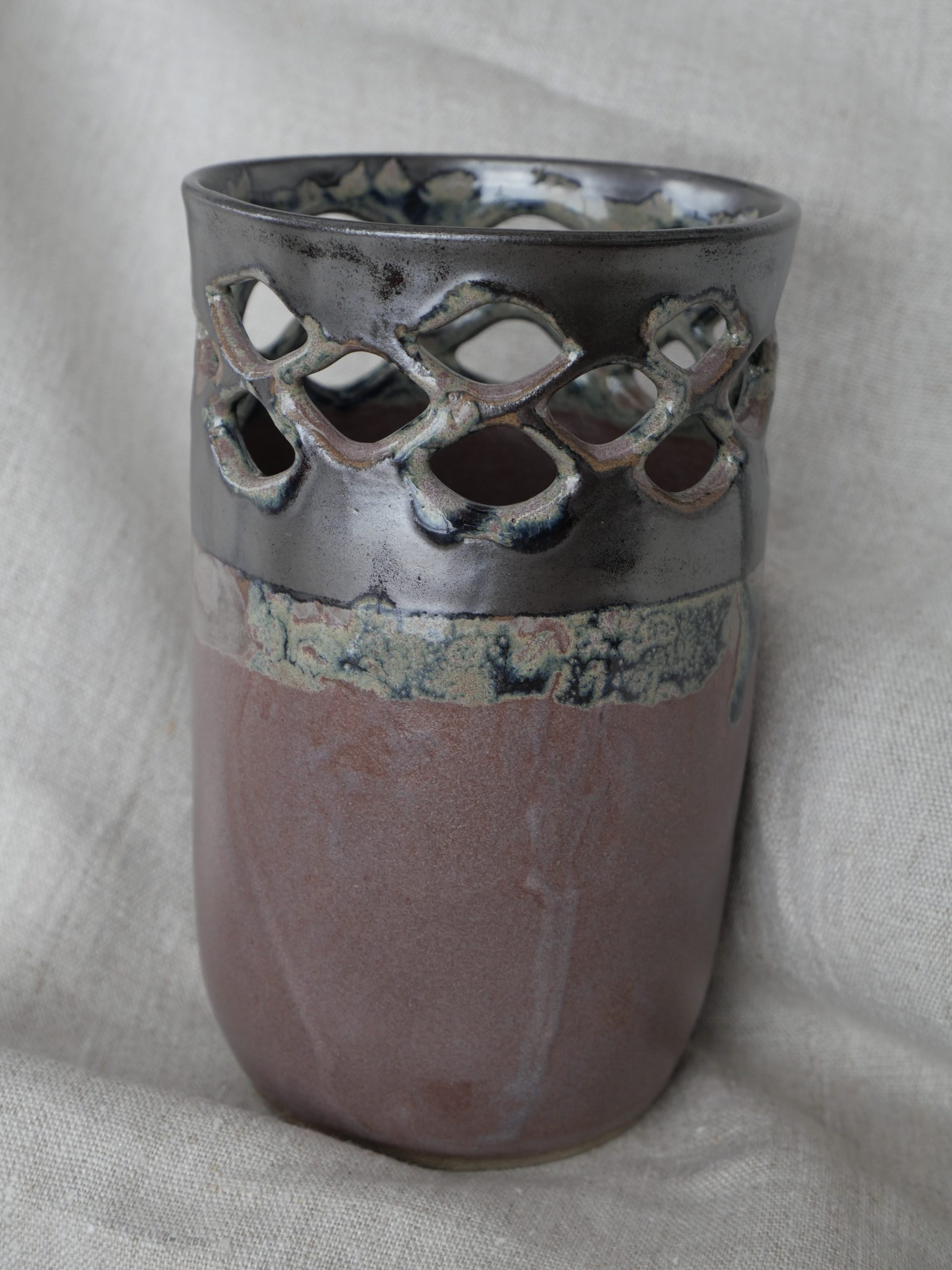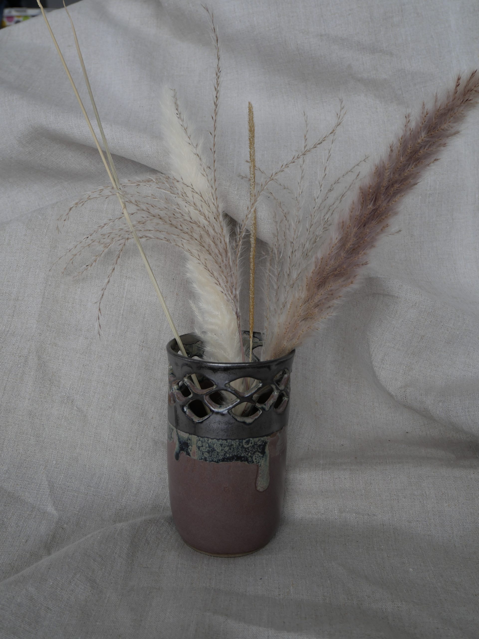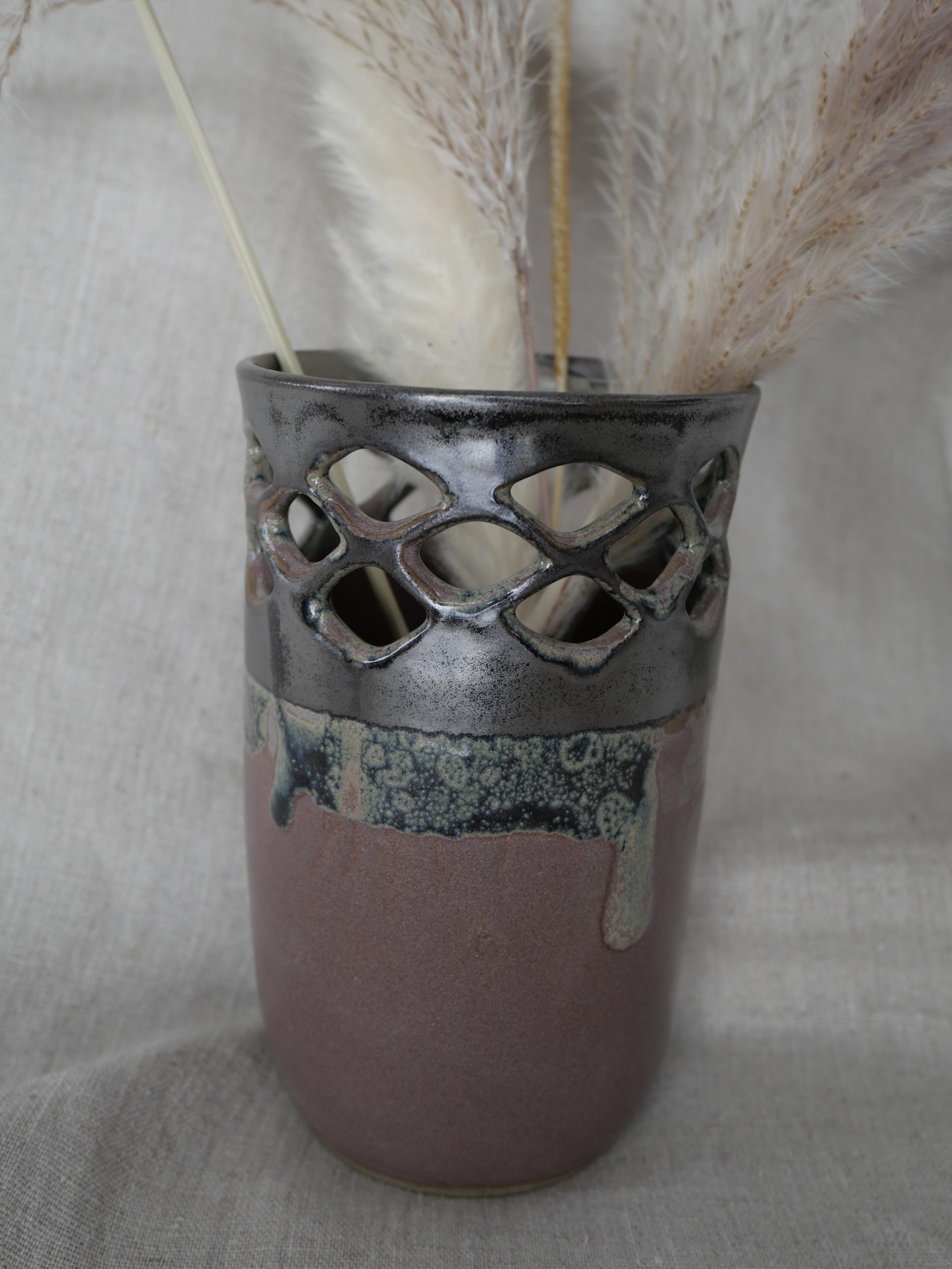 Vase en céramique réalisé 100 % à la main dans mon atelier. Tourné en grès, puis tournassé et émaillé