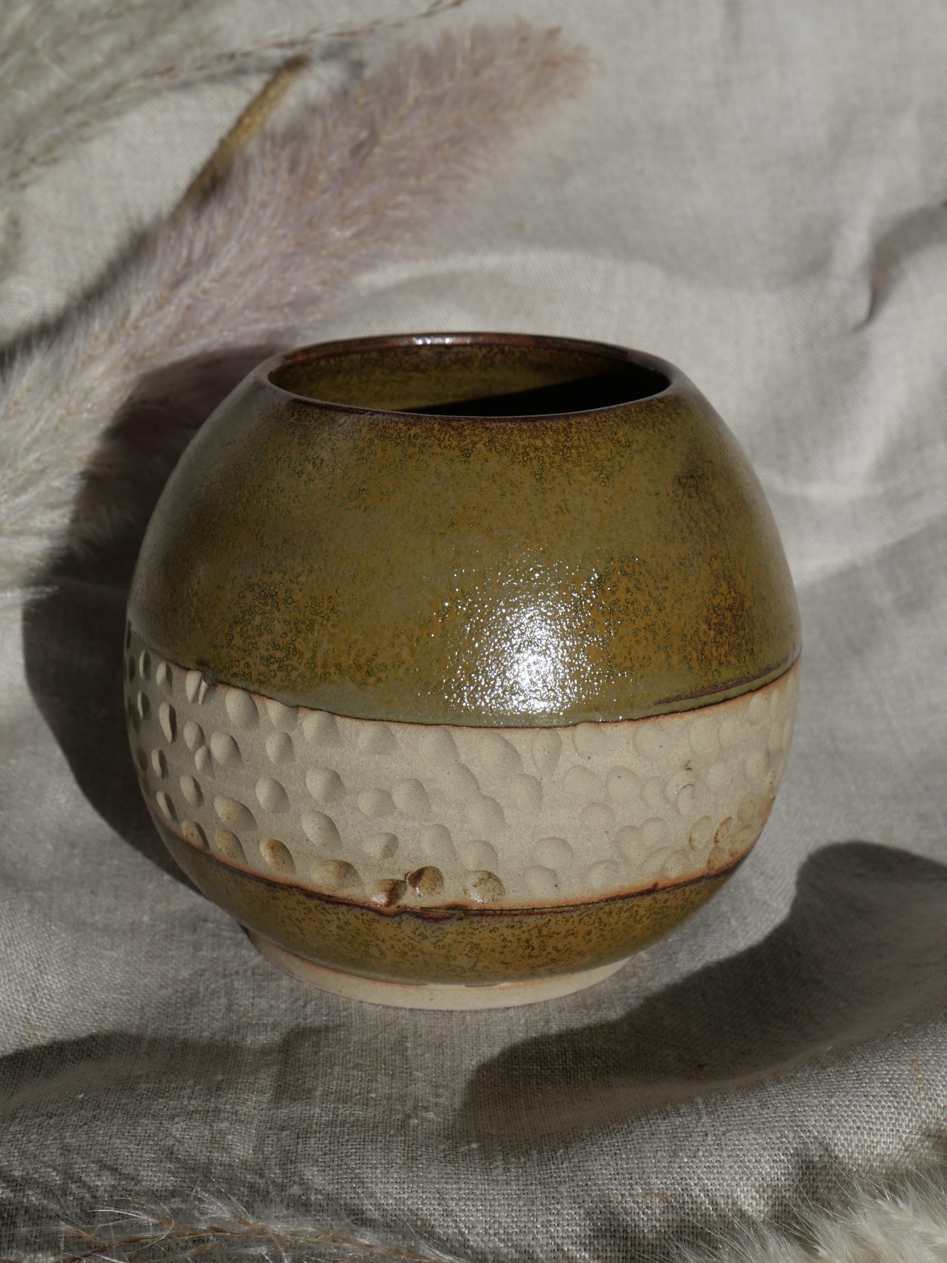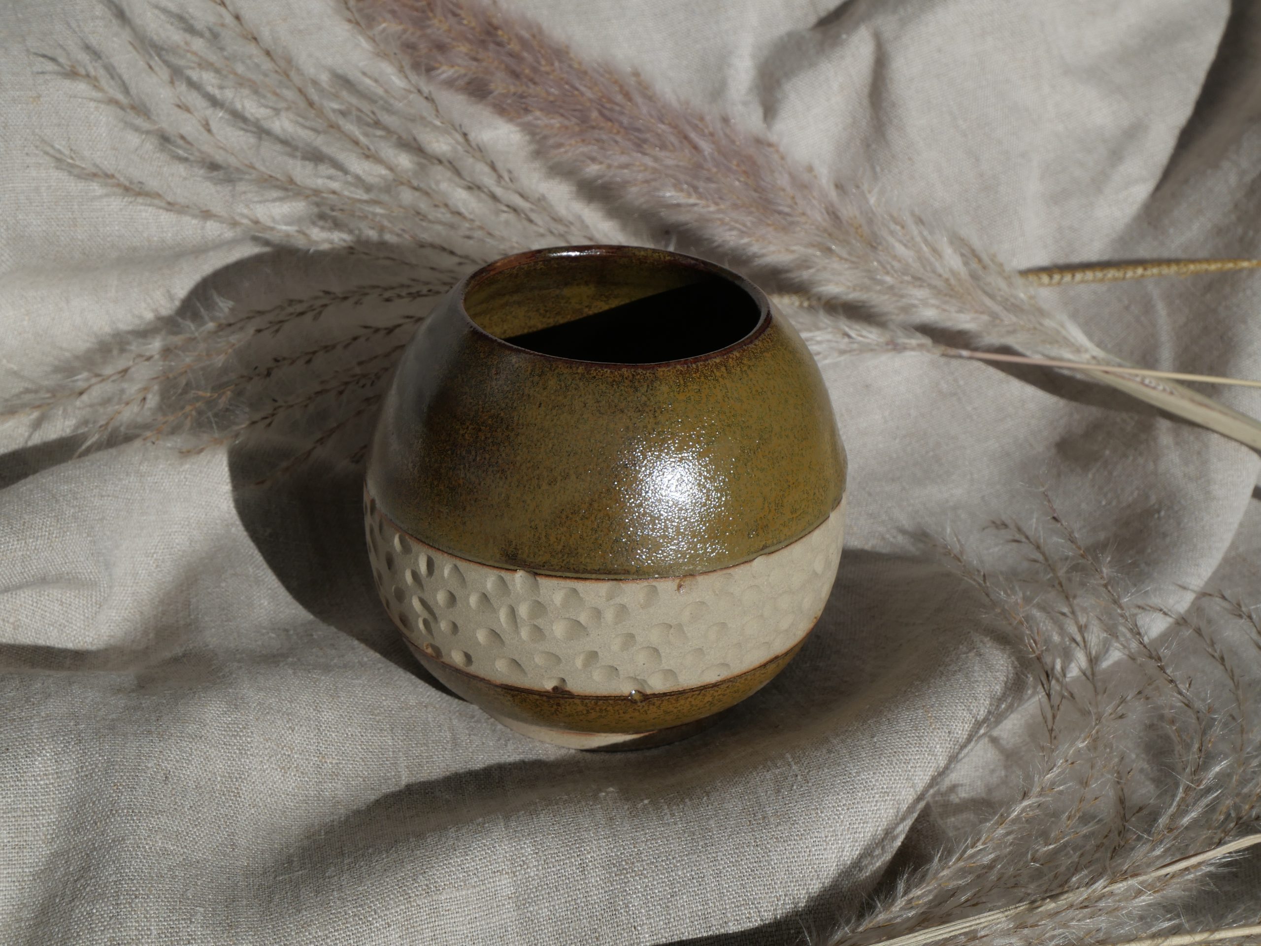 Vase en céramique réalisé 100 % à la main dans mon atelier. Tourné en grès, puis tournassé et émaillé