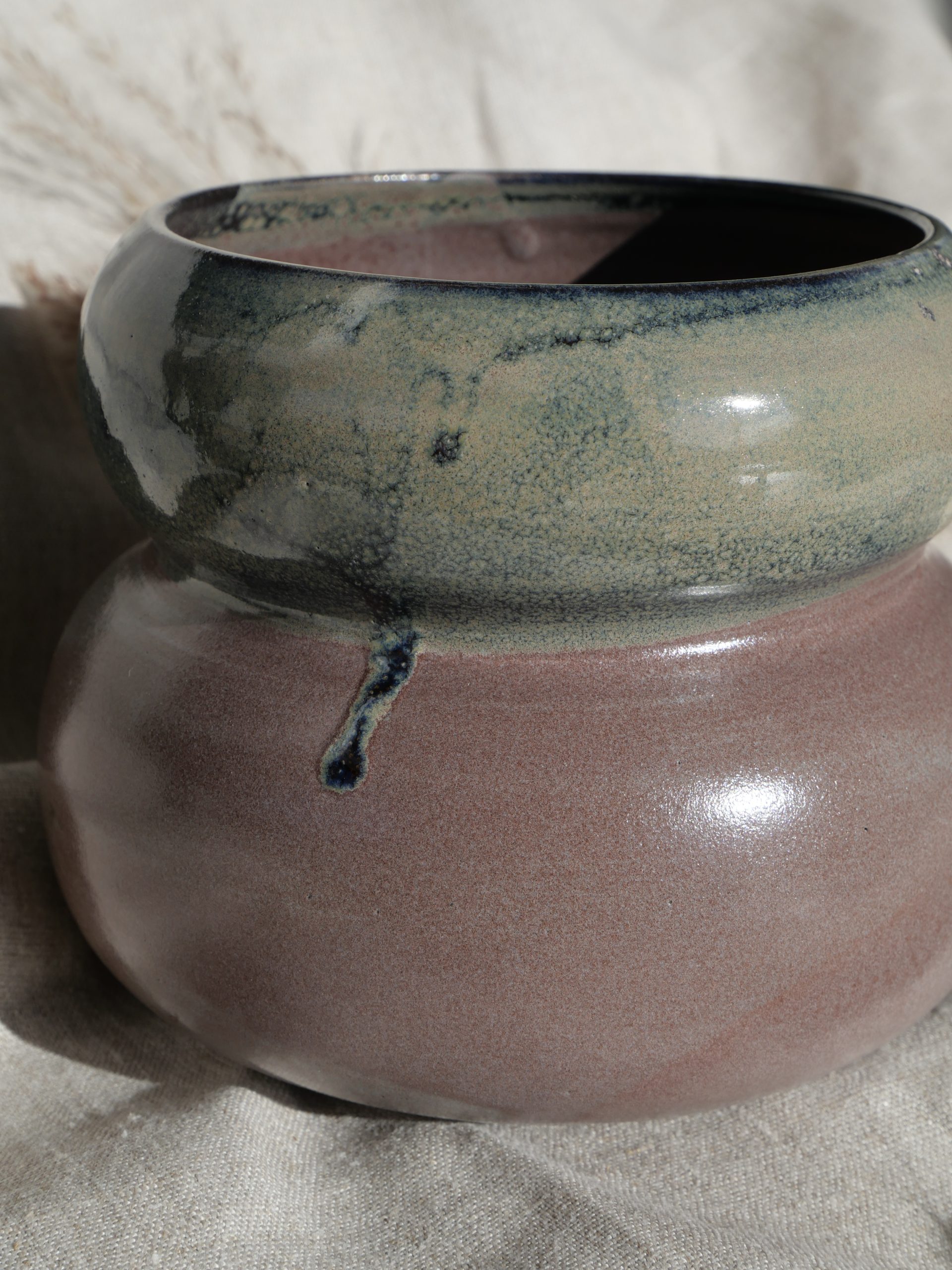 Vase en céramique réalisé 100 % à la main dans mon atelier. Tourné en grès, puis tournassé et émaillé